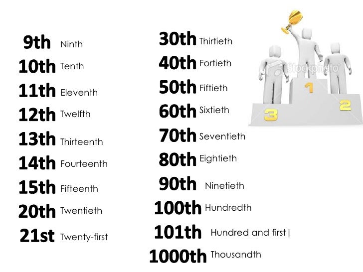 Numbers from eleventh to hundredth.